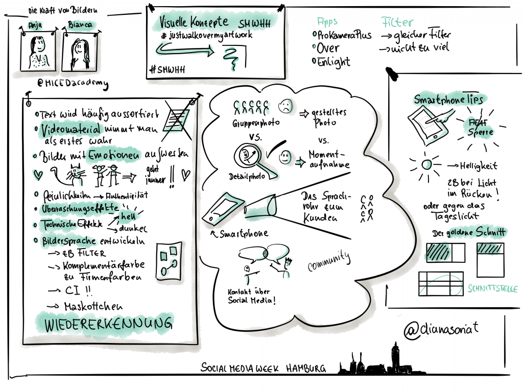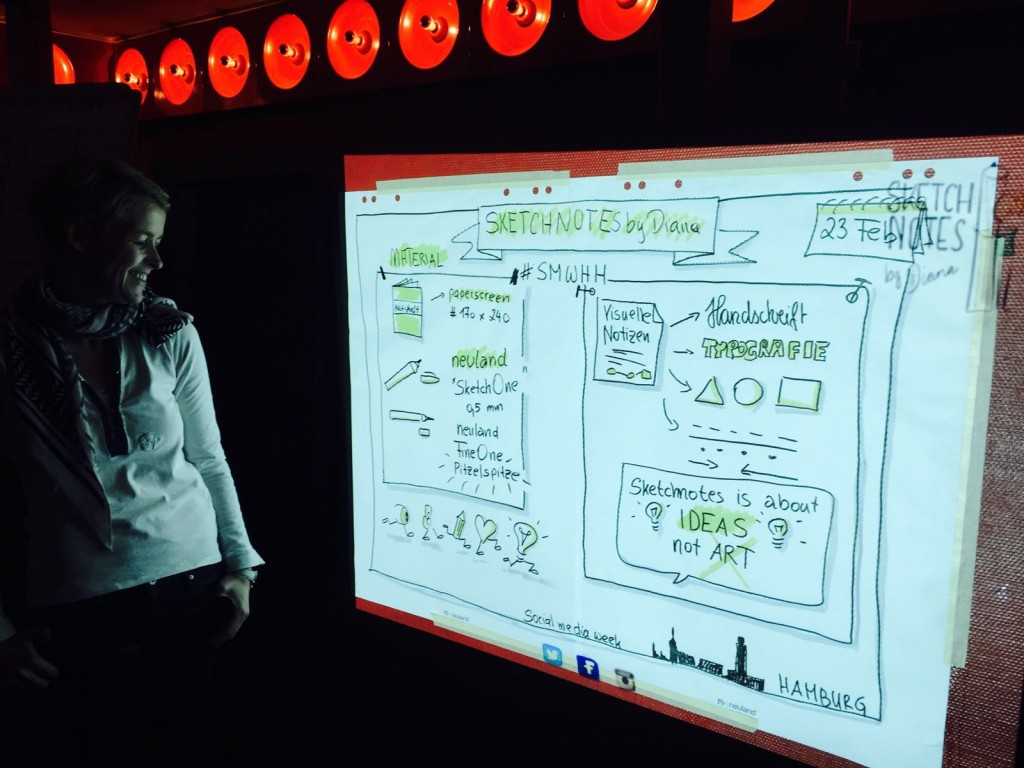 Die Social Media Week Hamburg 2016 war insofern besonders für mich, da ich dieses mal als Speaker auftreten durfte und einen Speed Crashkurs zum Erstellen von Sketchnotes gegeben habe. Meine Workshops dauern sonst 3 Stunden und eine einstündige Session, um die Teilnehmer zu infizieren, stellte mich vor eine besondere Herausforderung.