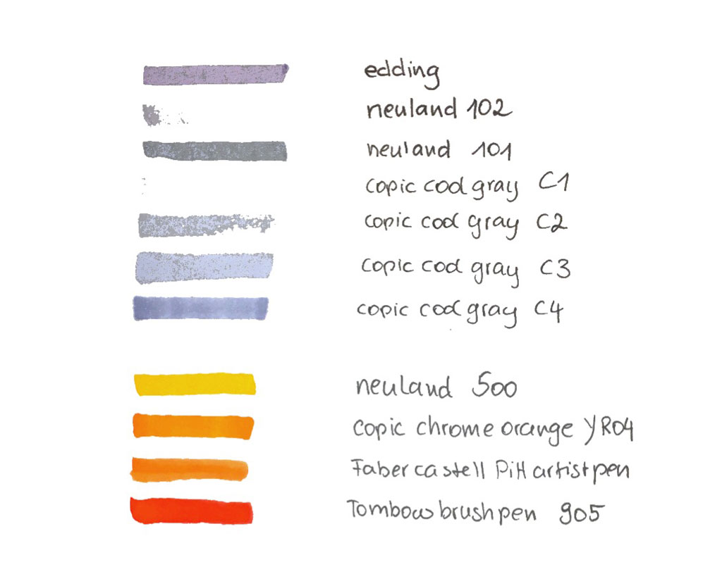 Für meine Sketchnotes sind für mich graue Schatten unabdingbar. Graue Schatten erzeugen Tiefe und die Bilder wirken lebendiger. Ich bin ein Fan der Neuland Marker. Jedoch sind helle Farben für diese App nicht kräftig genug. Der helle Grauton des FineOne Brush Pen wird auf dem Scan kaum oder nicht abgebildet. Die dunklere Variante von Neuland wird zwar abgebildet, jedoch ist mir das grau nicht „kalt“ genug. Ich bevorzuge für Schatten eher kaltes grau. Das ist allerdings meine ganz persönliche Meinung.