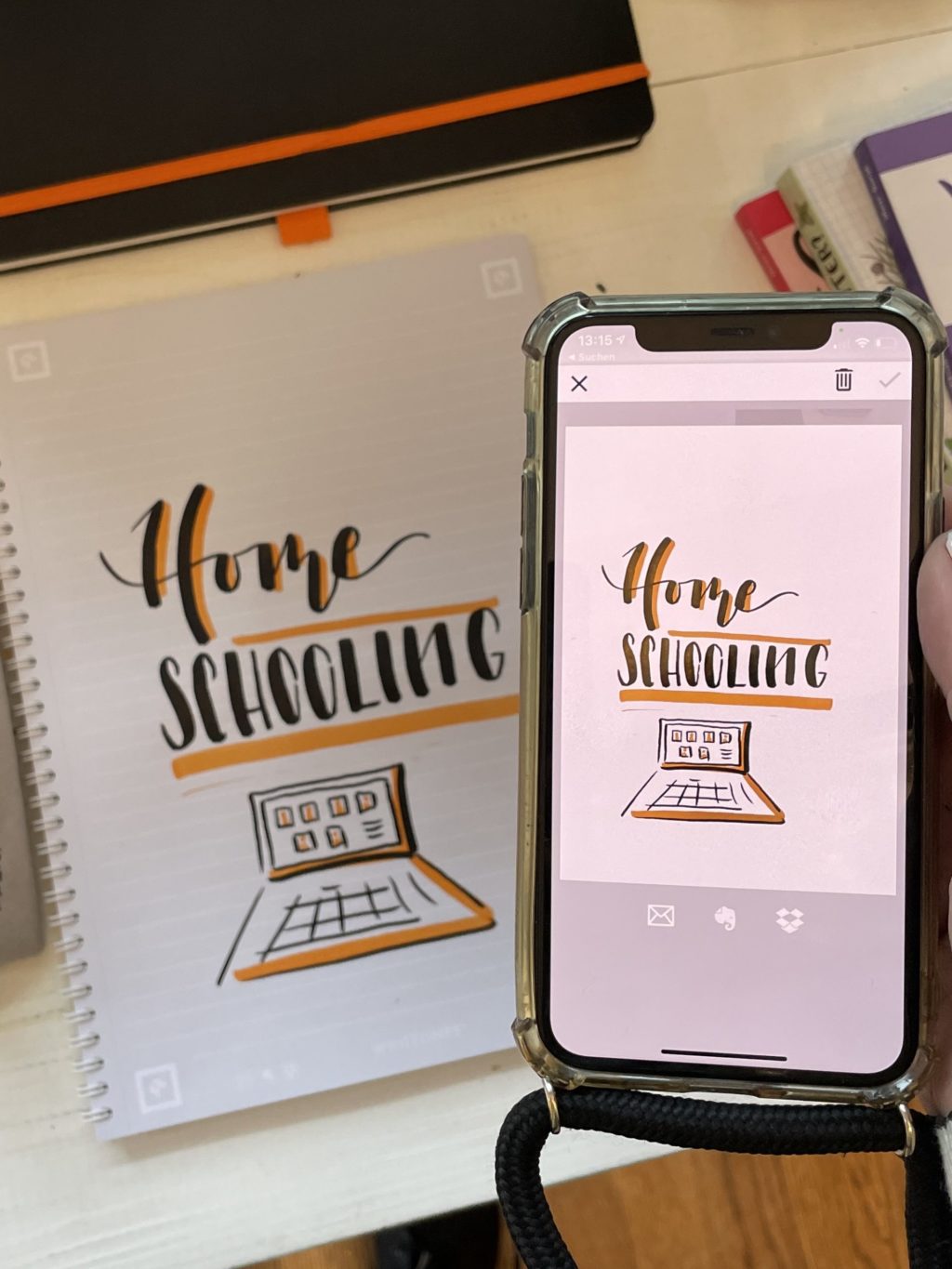 Nun kann man das gescannte ganze einfach digital versenden in der Fotomediathek speichern und in die gewünschten Social Media Kanäle hochladen. Außerdem sind sie in die Dropbox oder in Evernote zu verschieben. So lassen sich die Werke einfach und rasch digitalisieren, bearbeiten und verschicken.